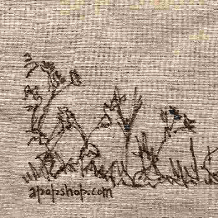 A personalização é feita manualmente, num dos lados do saco, com um marcador preto de tinta resistente à lavagem, resultando num exemplar artesanal único, mas as imagens apresentadas são meramente exemplificativas, correspondendo a uma peça única e exclusiva.