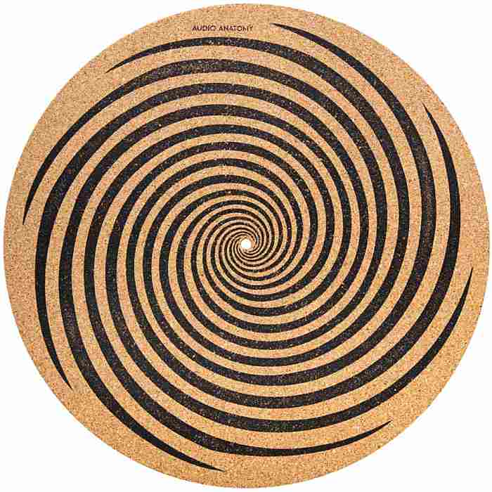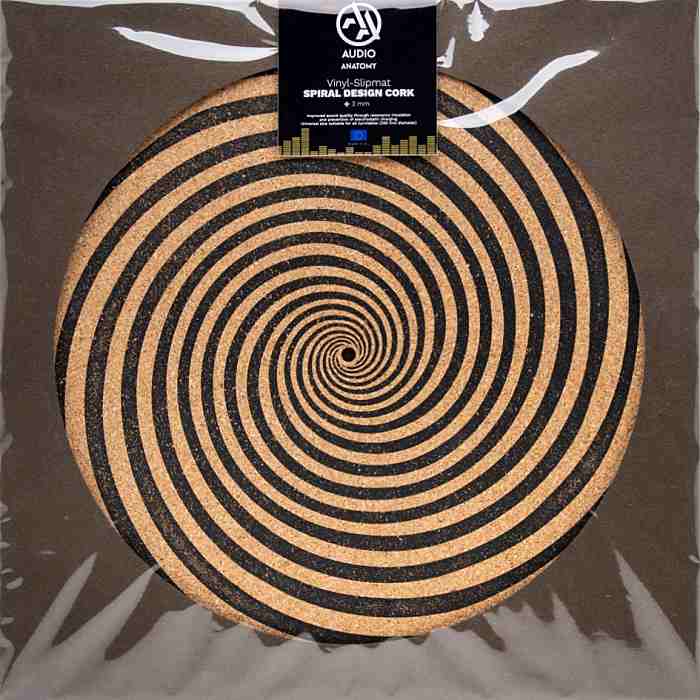 The Audio Anatomy Vinyl-Slipmat with Spiral-Design consists of 3 mm thick cork. With a diameter of 295mm, the slipmat fits all turntables. The cork’s insulating properties prevent harmful resonances. In contrast to felt mats, cork additionally avoids electrostatic charging and thus prevents cracking when playing the record. The Spiral-Design is always an eye catcher on any moving or still turntable.