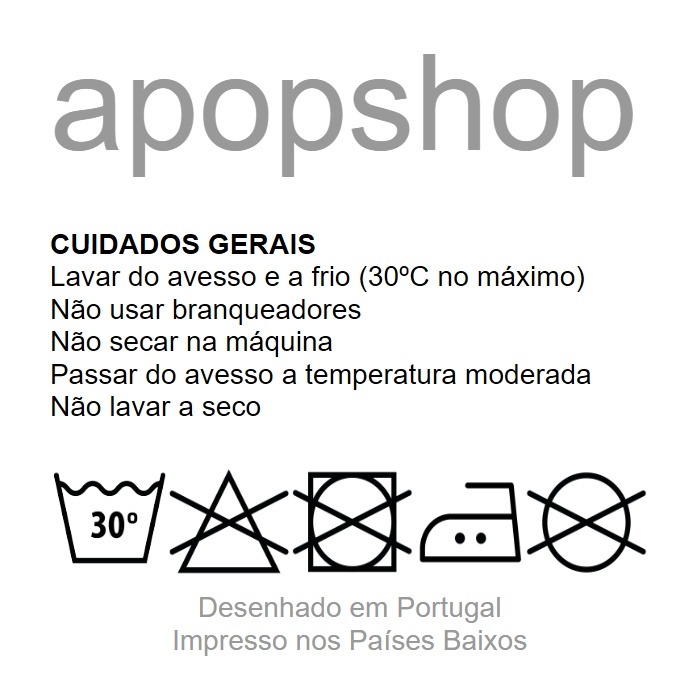 T-shirt fabricada com algodão produzido em Marrocos pela marca norte-americana Fruit of the Loom, desenhada em Portugal e impressa nos Países Baixos.