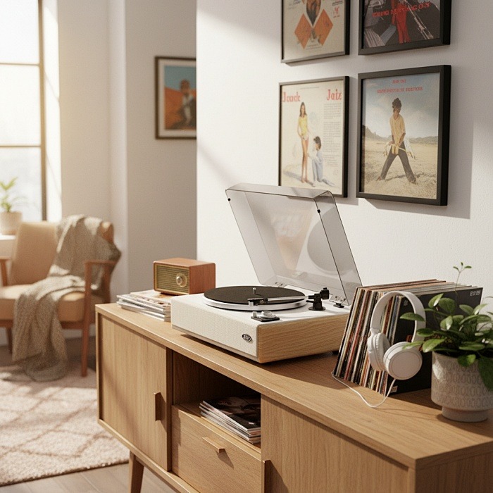 Grâce à sa connectivité Bluetooth 5.3, elle diffuse aussi votre musique sans fil depuis un smartphone ou une tablette, alliant authenticité du vinyle et modernité du streaming. Son entraînement par courroie, son moteur à courant continu et sa cellule à aimant mobile assurent une lecture fluide et fidèle de vos disques 33 et 45 tours.